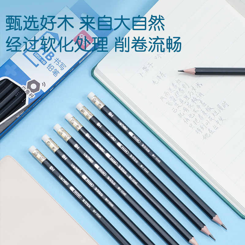 得力(DELI)S955-HB_黑杆办公皮头HB铅笔(黑)(12支/盒)(盒)