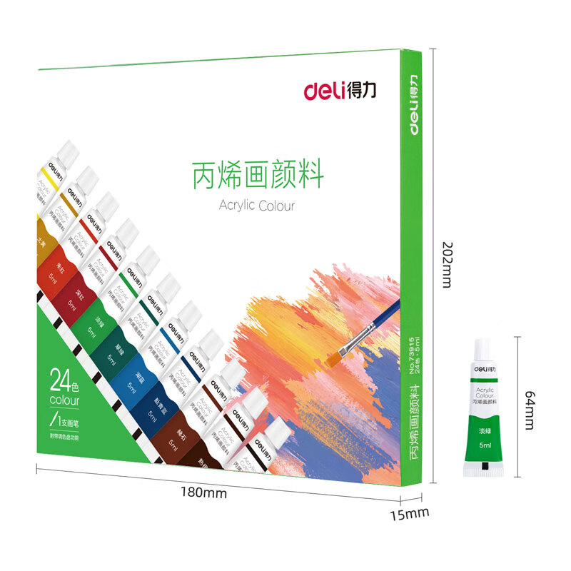 得力73915_24色5ml丙烯颜料(混)(盒)
