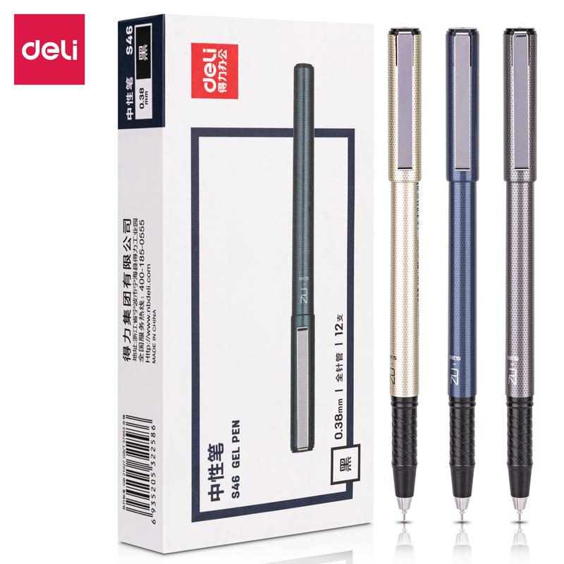 得力(DELI)S46 签字笔中性笔水笔 0.38mm 12支/盒 黑色 (单位:支)