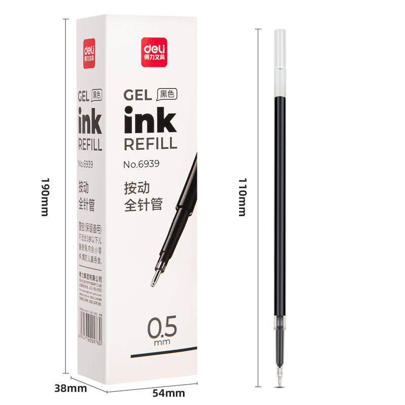 得力6939速干中性笔替芯0.5mm按动全针管(黑)(支)