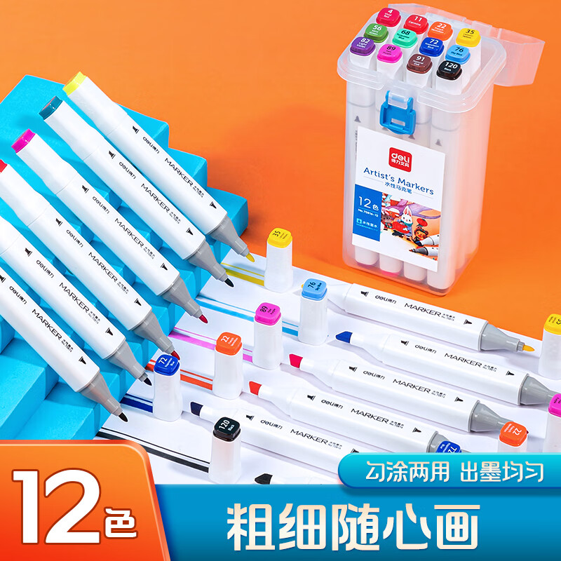 得力HM924-12双头丙烯马克笔(混)(12支/盒)