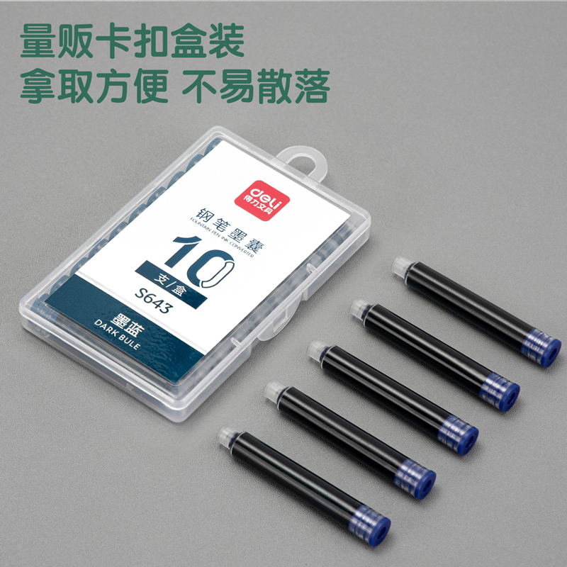 得力S643钢笔墨囊(墨蓝)(10支/盒)(单位:盒)