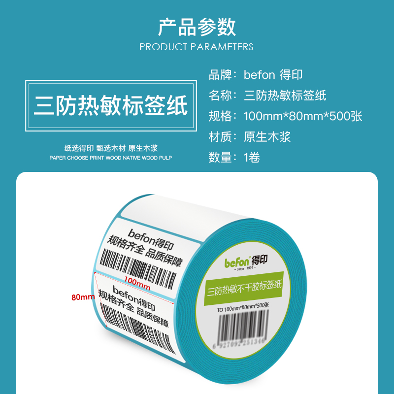 得印三防热敏不干胶标签纸 100*80*500枚 单排圆角(单位:卷)