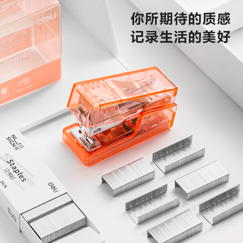 纽赛NS083F透明迷你订书机(混)(1订书机+1盒钉/盒)