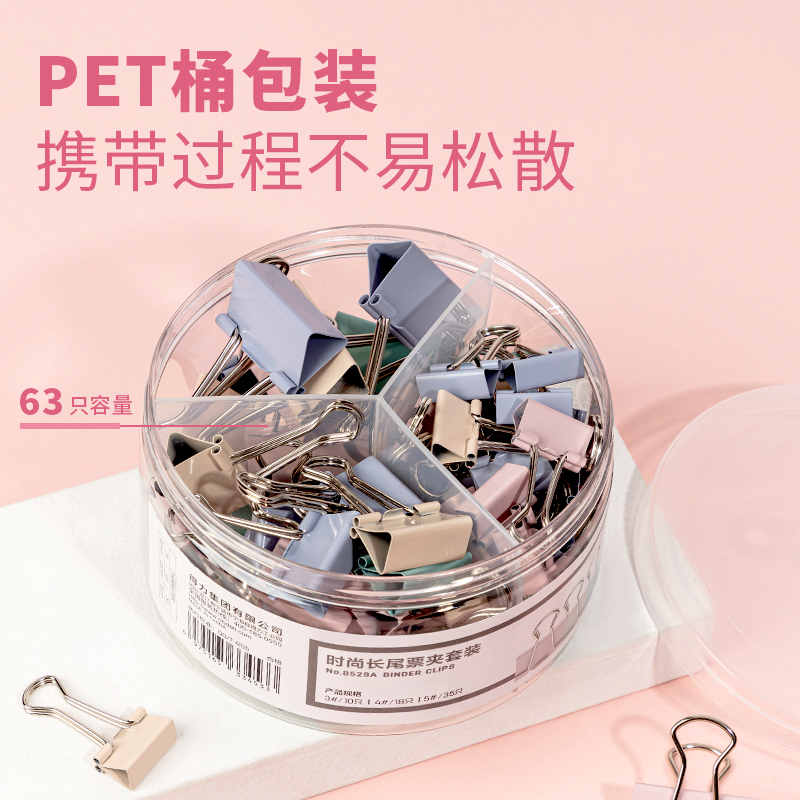 得力8555A时尚长尾票夹(混色)(40只/桶)