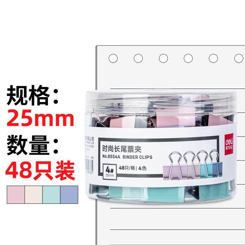 得力8554A时尚长尾票夹(混色)(48只/桶)