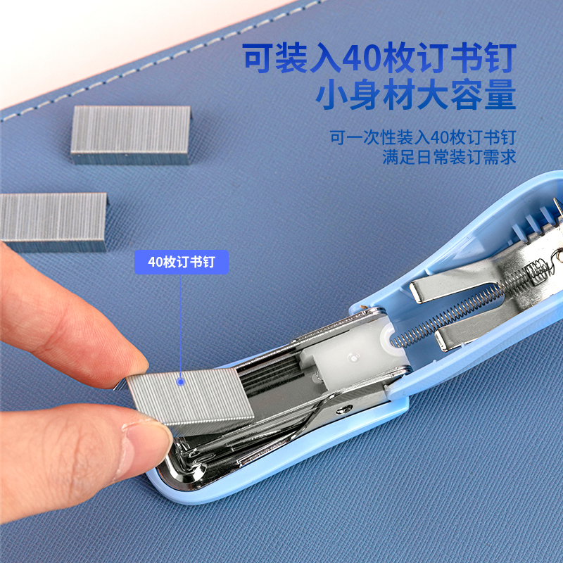 得力0255迷你订书机套装(蓝色)(1订书机+1订书钉/卡)(套)