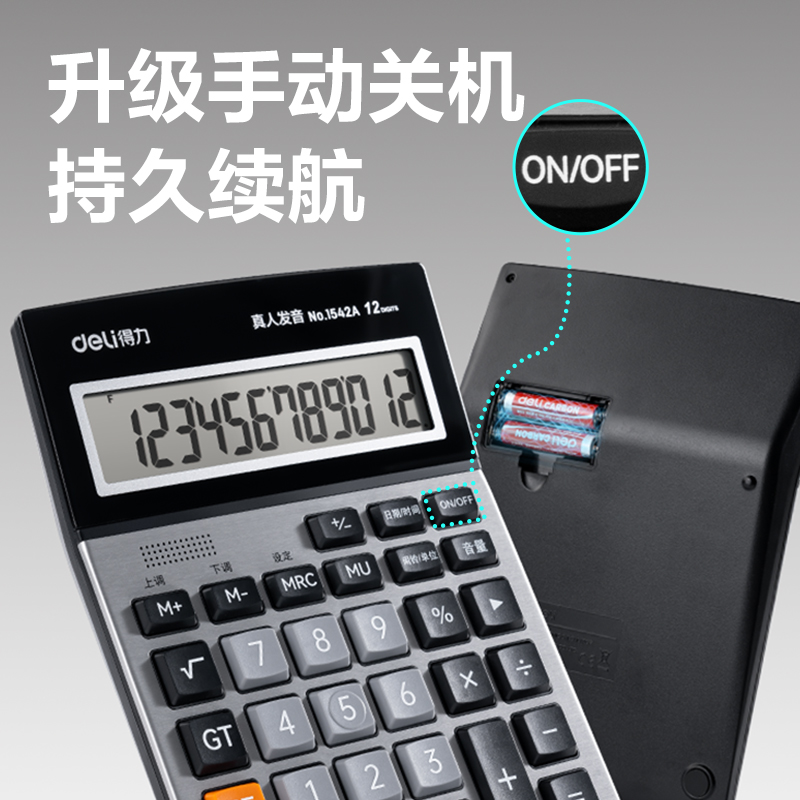 得力手动关机语音计算器1542A(银色)(台)