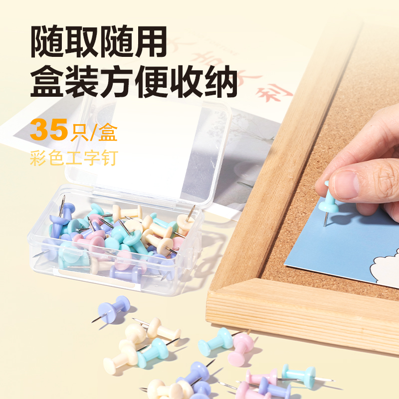 得力0021-A彩色工字钉(混)(35只/盒)