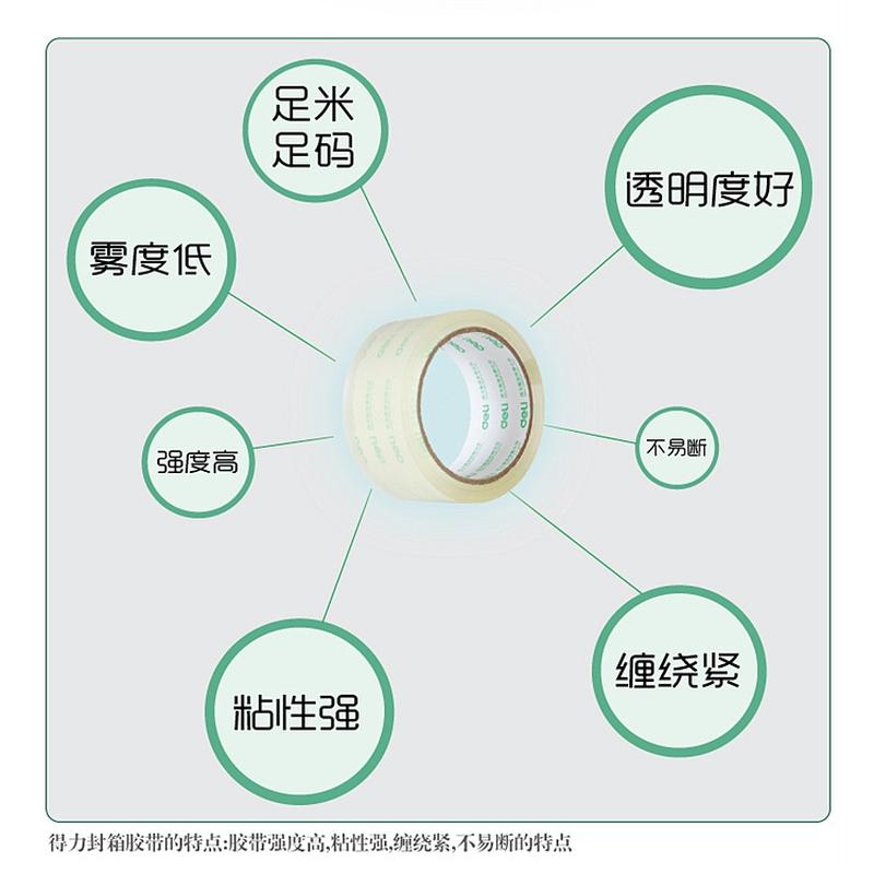 得力封箱胶带30170 45mm*30y*50um(6卷/筒)(高透)