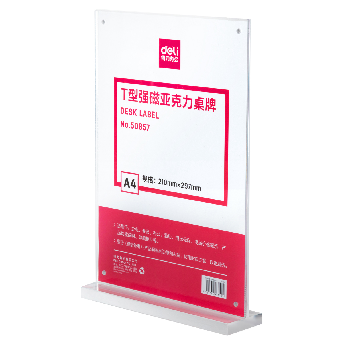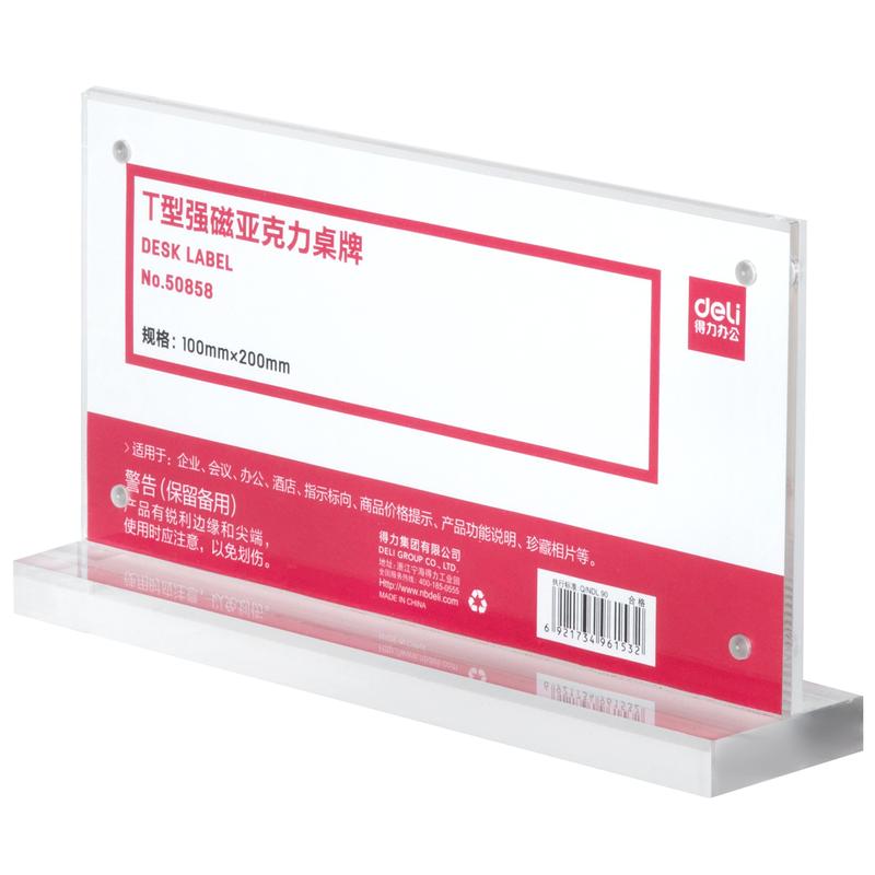 得力50857T型强磁亚克力桌牌(透明)(个)