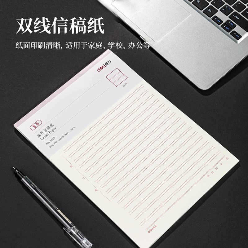 得力 3428 双线信纸稿纸-70g-266*190mm (本)