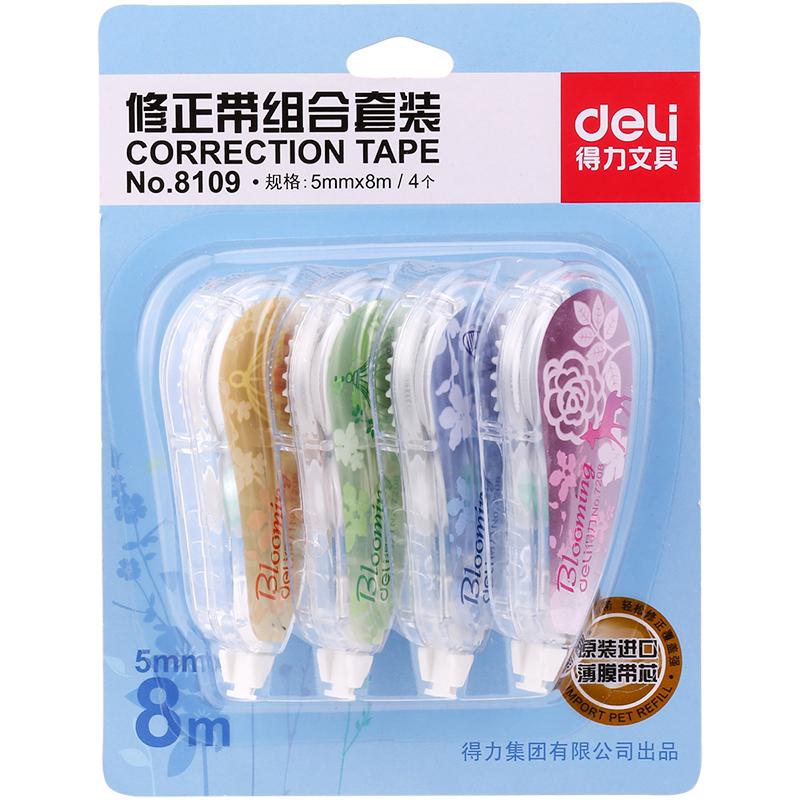 得力 8109 修正带组套装修正用品 (4只/卡) (单位:卡) 混色