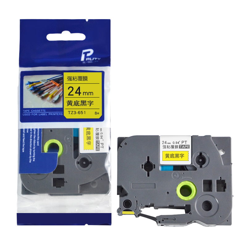 普贴TZ3-651标签打印机色带黄底黑字24mm(卷)(适用兄弟PT系列标签机)