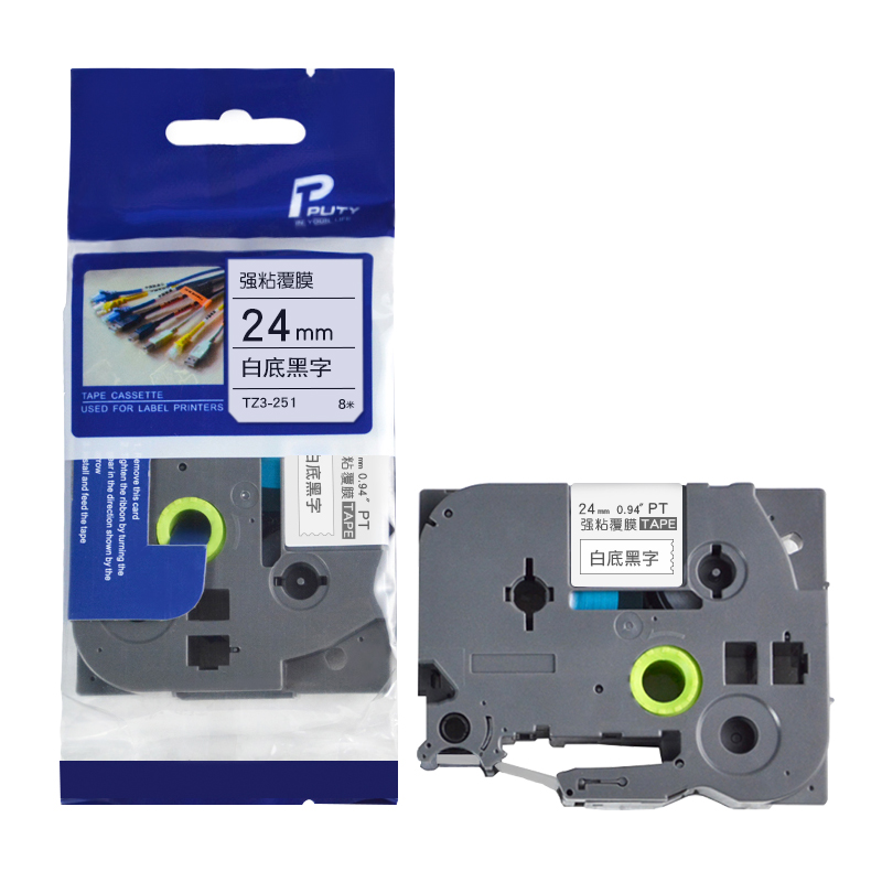 普贴TZ3-251标签打印机色带白底黑字24mm(卷)(适用兄弟PT系列标签机)