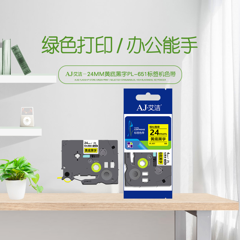 艾洁PL/TZe-651兄弟标签机色带24mm黄底黑字(个)