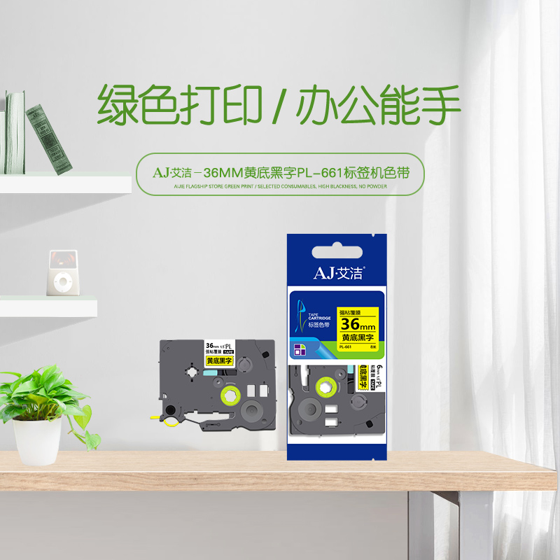 艾洁PL/TZe-661兄弟标签机色带36mm黄底黑字(个)