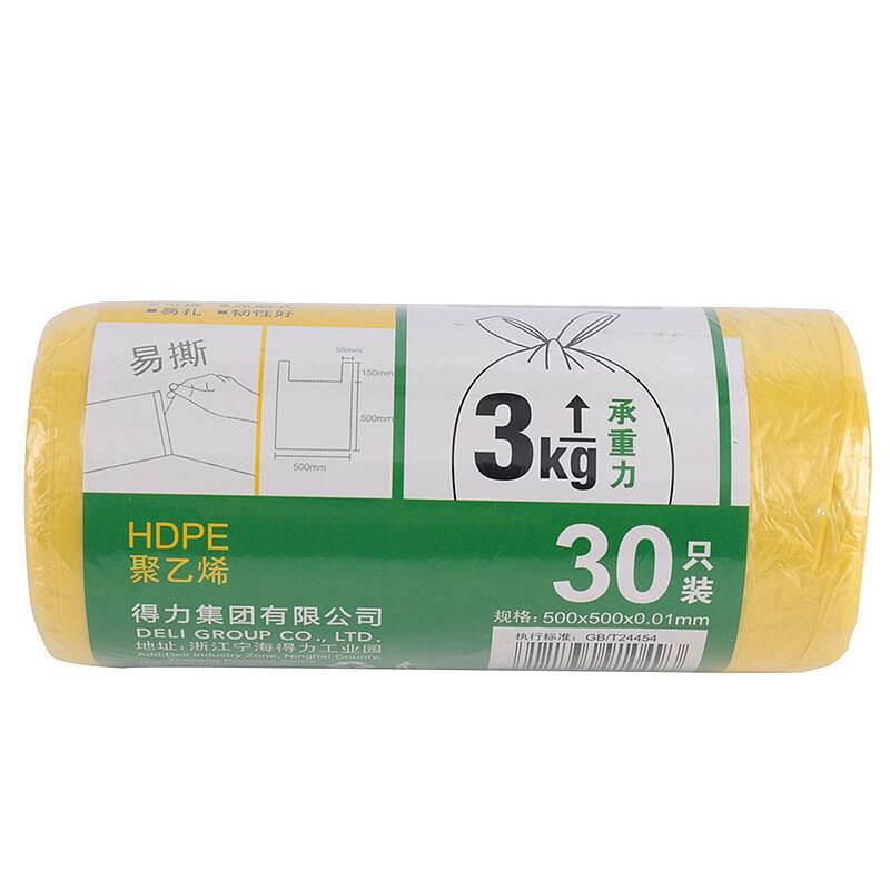 得力18817背心式垃圾袋50*50cm 30只/卷 黄色(单位:卷)