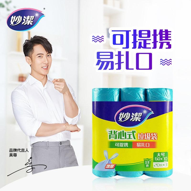 妙洁MBGRVL3背心式垃圾袋50*70cm*20只*3卷*20组/箱(组)