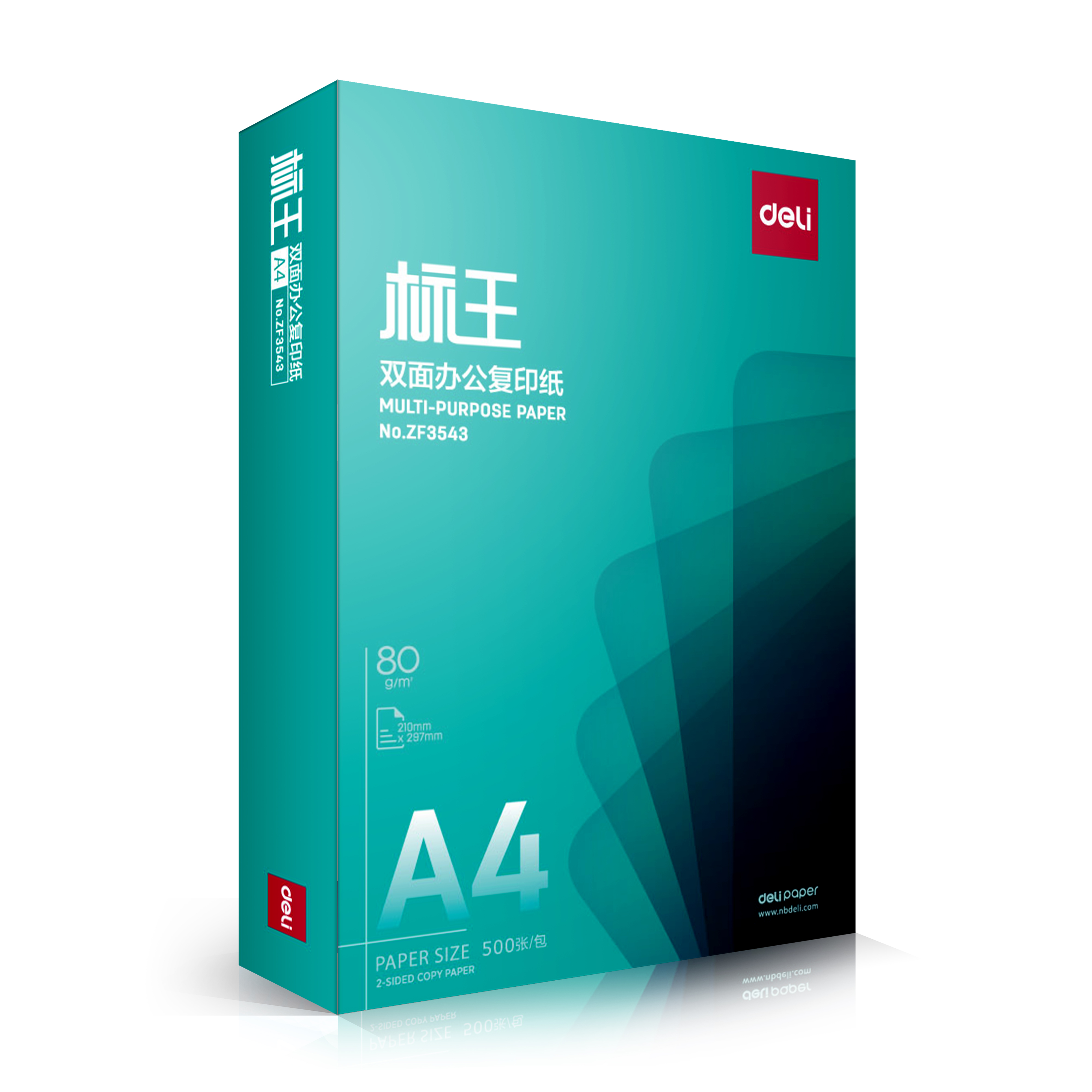 得力ZF3544标王复印纸A4-80g-5包(绿)(包)