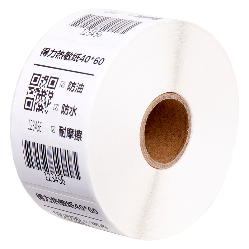 得力12012三防热敏标签纸(40*60mm-640张)(白)(2卷/筒)(单位:筒)