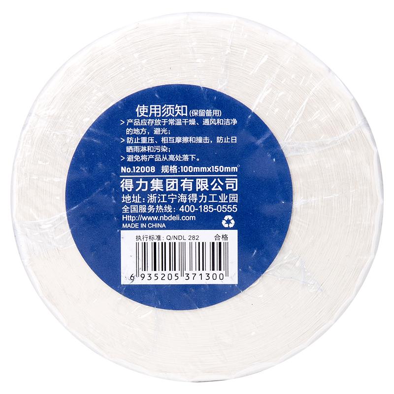 得力12008三防热敏标签纸 1卷/筒 100*150mm-325张(单位:筒)白