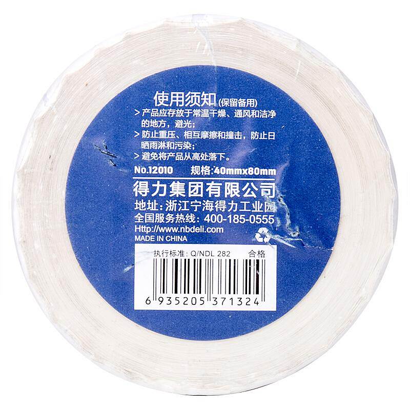 得力12010三防热敏标签纸(40*80mm-480张)(白)(2卷/筒)