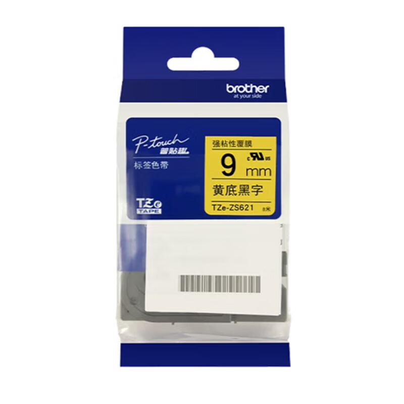 兄弟Tze-s621强粘性标签机色带(适用兄弟PT系列标签机)黄底黑字9mm(卷)