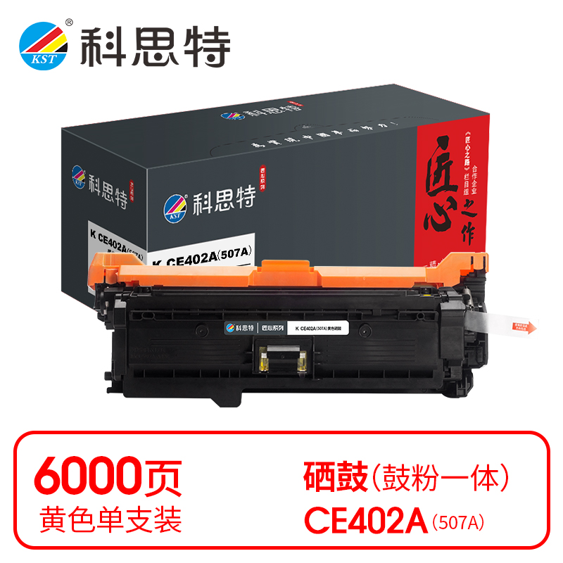 科思特(KST)兼容K CE402A(507A) 匠心版硒鼓(鼓粉一体)黄色(适用惠普LaserJet 500 Color M551n/M551dn/M551xh)打印页数:6000页(单位:支)