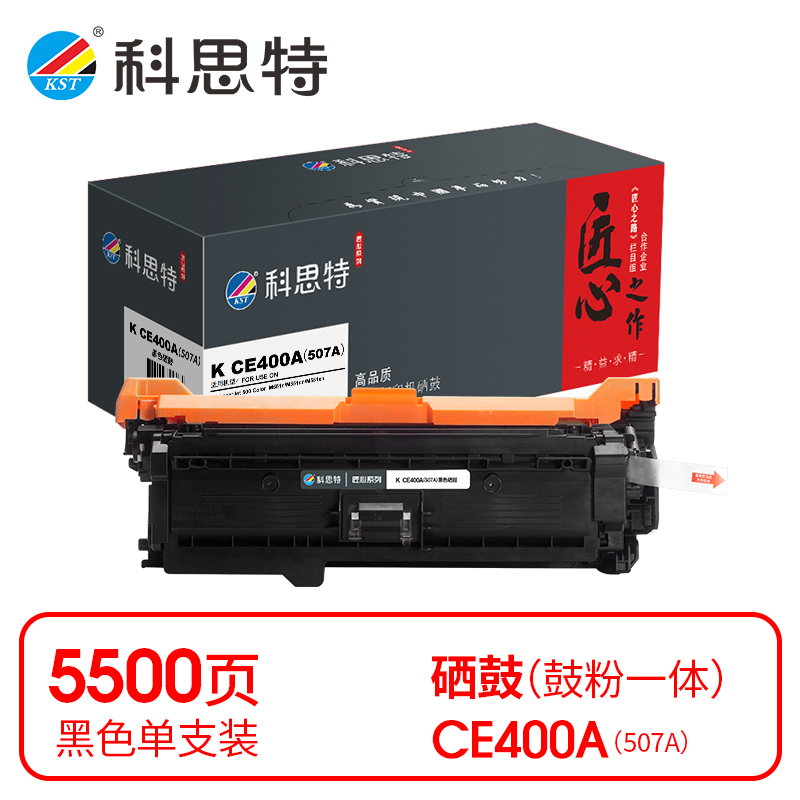 科思特(KST)兼容K CE400A(507A) 匠心版硒鼓(鼓粉一体)黑色(适用惠普LaserJet 500 Color M551n/M551dn/M551xh)打印页数:5500页(单位:支)