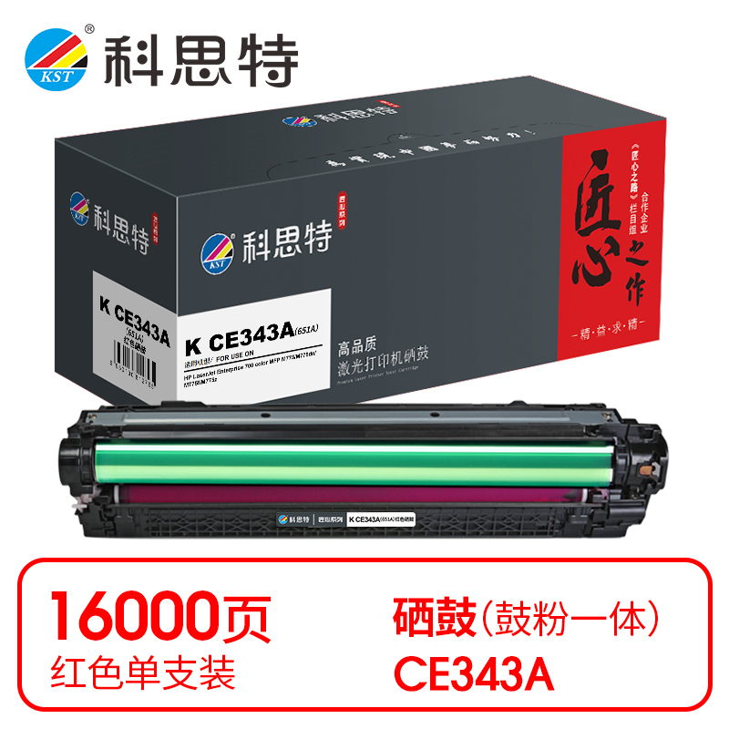 科思特(KST)兼容K CE343A(651A) 匠心版硒鼓(鼓粉一体)红色(适用惠普MFP M775/M775dn/M775f/M775z)打印页数:16000页(单位:支)