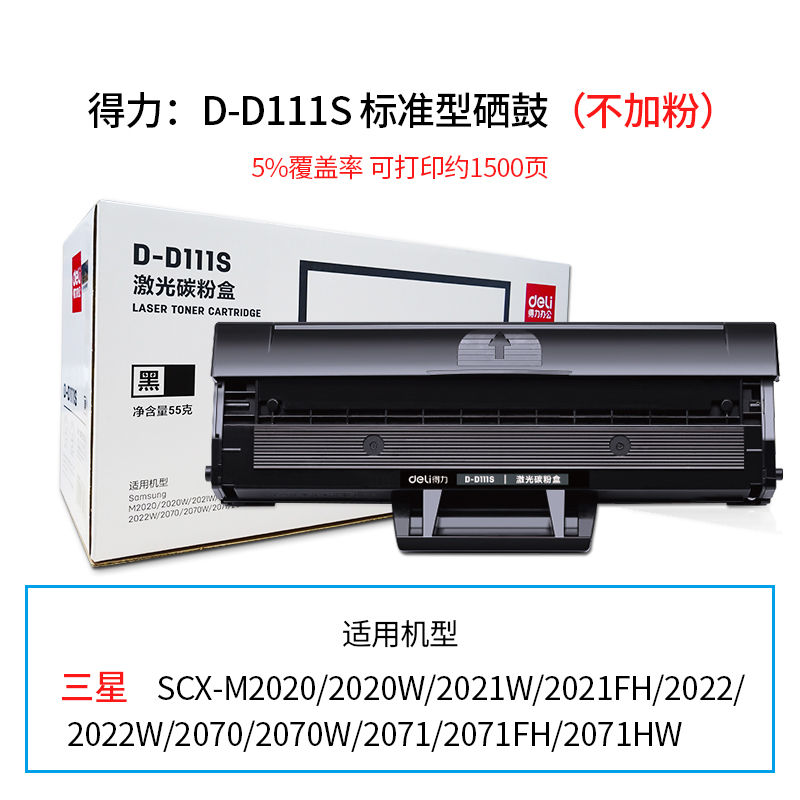 得力(deli)兼容D-D111S硒鼓(鼓粉一体)黑色单支装(适用Samsung M2020/2020W/2021W/2021FH/2022/2022W系列)打印页数:1000页(单位:支)