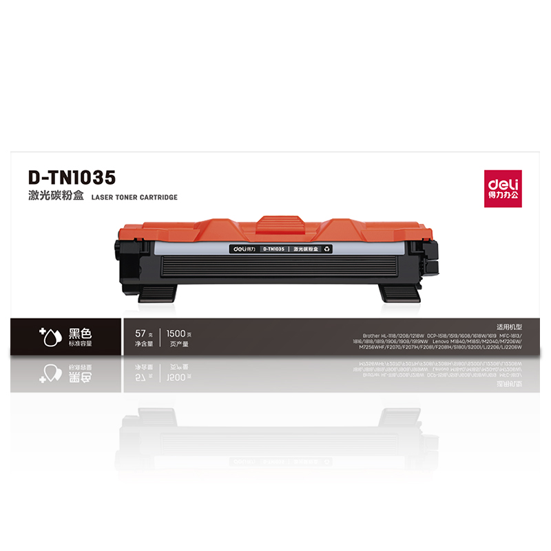 得力(deli)兼容D-TN1035粉盒(鼓粉分离)黑色单支装(适用Brother HL-1111/1118/1208/1208w系列)打印页数:1500页(单位:支)