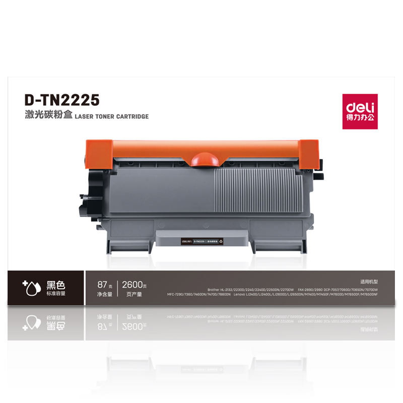 得力(deli)兼容D-TN2225粉盒(鼓粉分离)黑色单支装(适用BrotherHL2132/2135/2230/2240/2240D/2250系列)打印页数:2600页(单位:支)