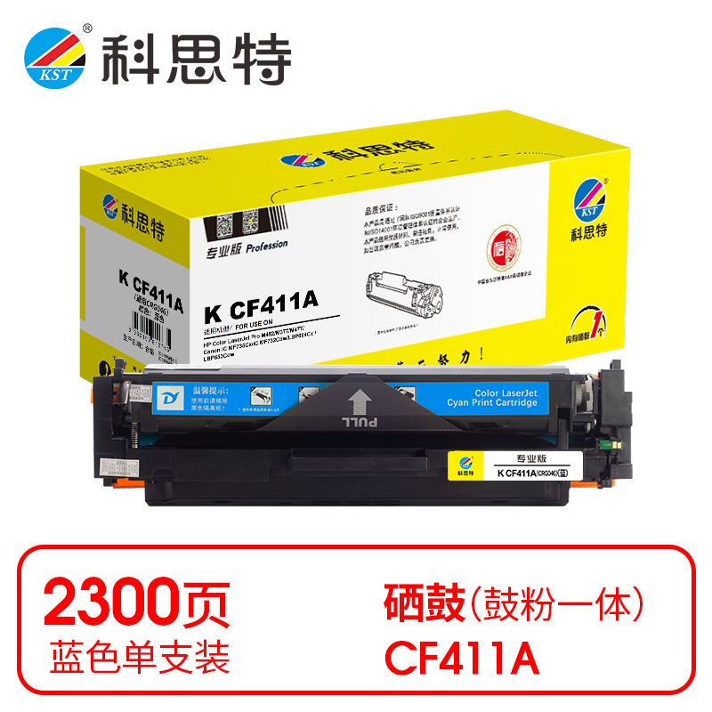 科思特(KST)兼容K CF411A/CRG046 硒鼓(鼓粉一体)蓝色单支装(适用惠普M377dw M452nw/dn/dw M477fdw/fnw/dn))打印页数:2300页(单位:支)专业版