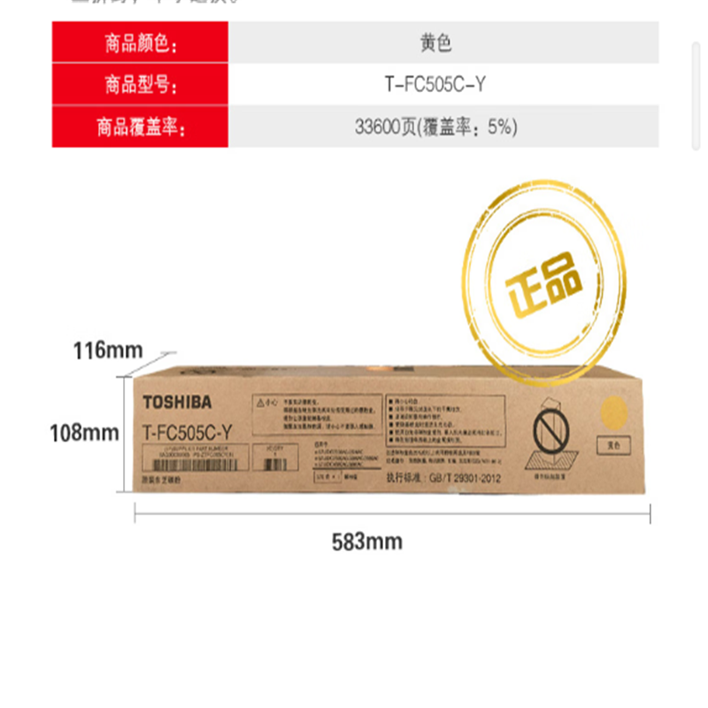 东芝(TOSHIBA) T-FC505C-Y 原装碳粉(墨粉)黄色单支装(适用e-STUDIO2000AC/2500AC/2505AC/3005AC)打印页数:33600(个)