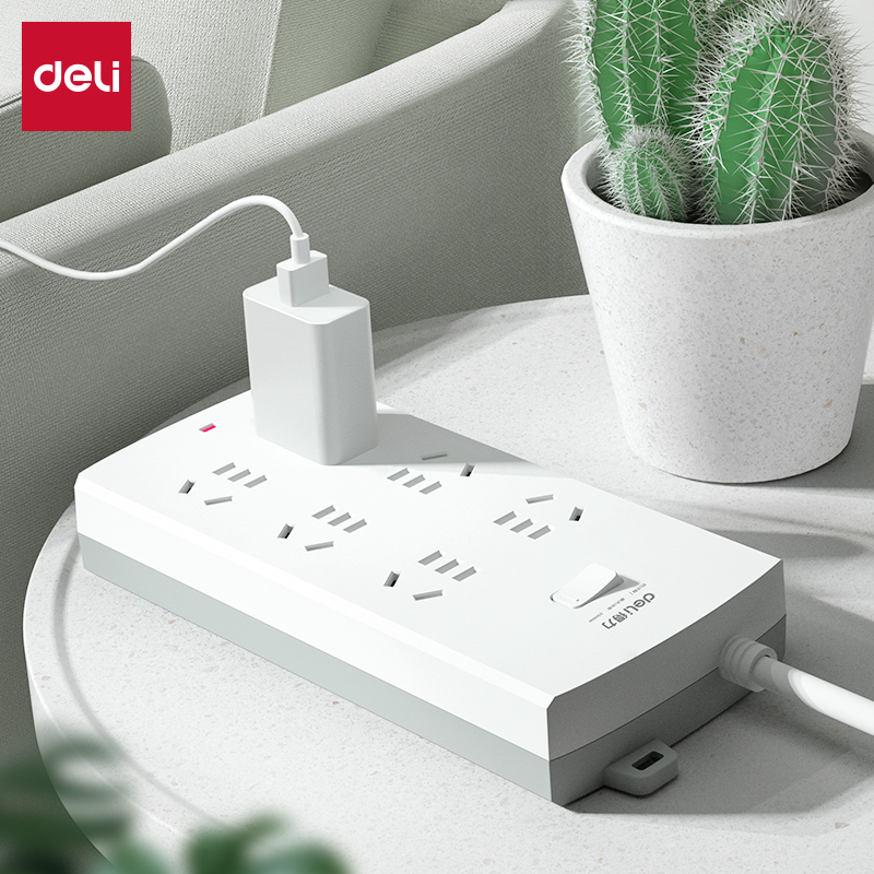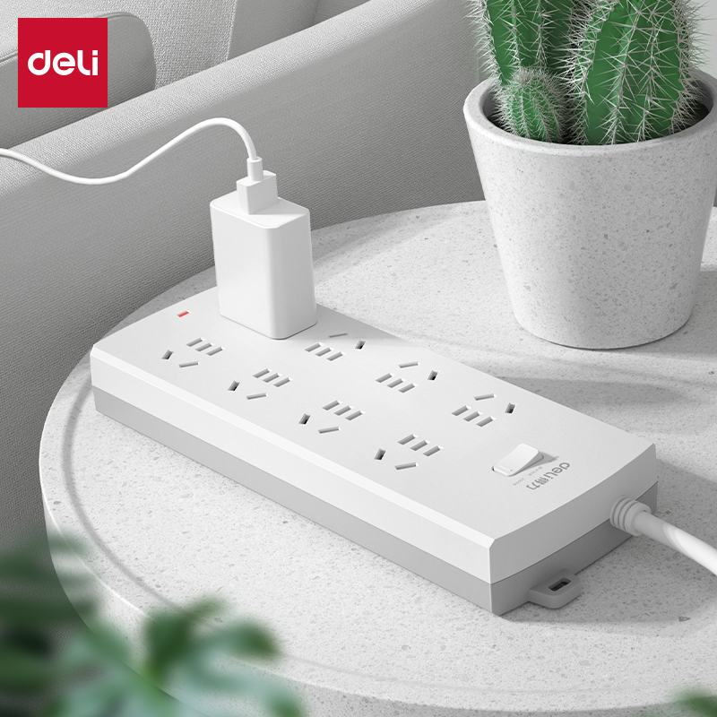 得力LV8060(05)插座总控 6组 5米 (白)(单位:个)