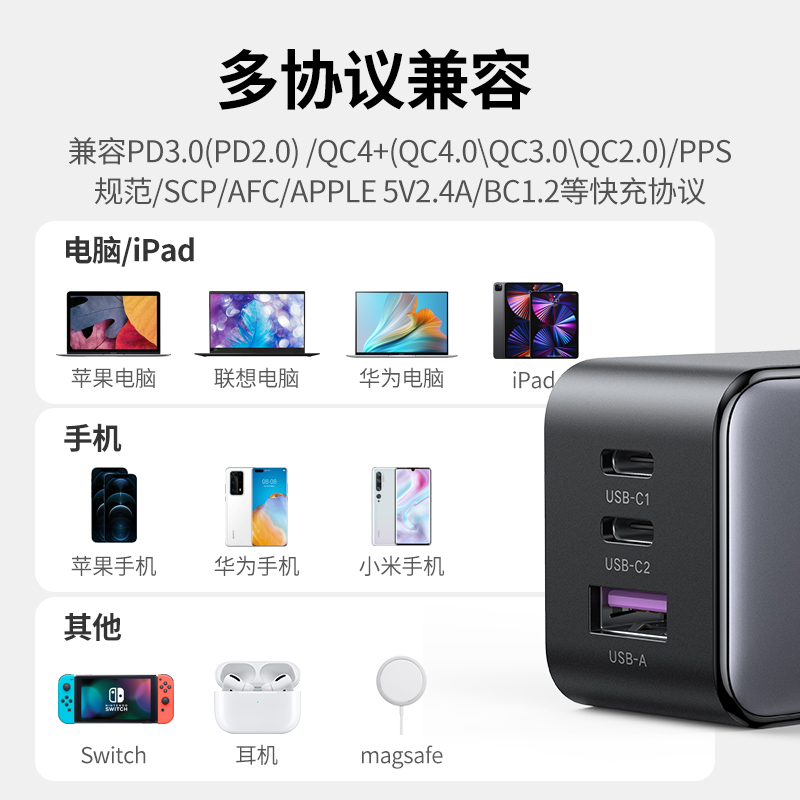 绿联50653氮化镓GaN 65W充电器+1.5m100W充电线(套)