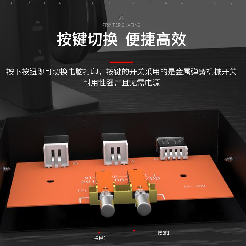 山泽BL-202WUSB打印机共享器2进1出2口USB手动切换器免驱(个)