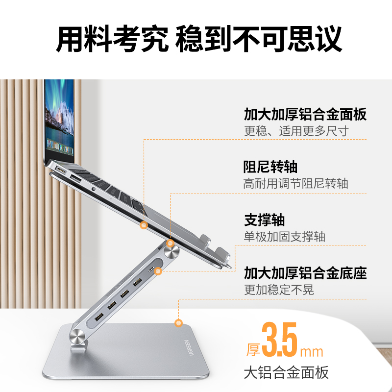 绿联60975可升降笔记本支架 银色/附带USB3.0分线器CM532(个)