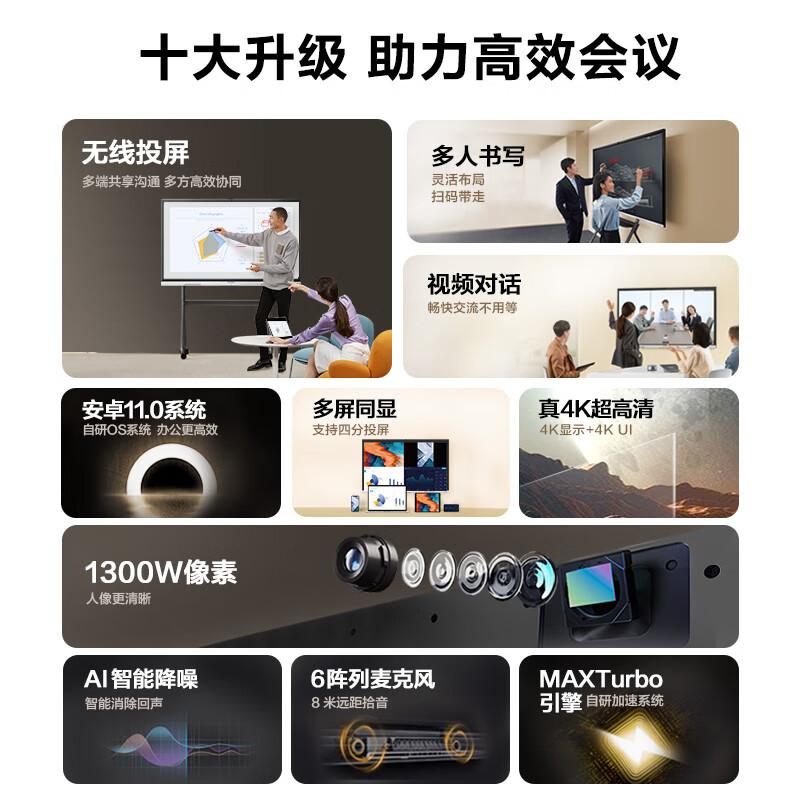 京东方BOE 启辰系列会议平板 BWBB0-CA01F可触摸智慧一体机 专业高配办公 110寸4K红外屏,4800W摄像头、8阵列麦克风&音箱、八核8GB+64GB含挂墙支架 (单位:台)