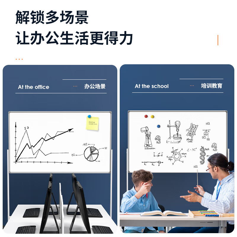 得力MB711_H型可升降双面白板1200*900mm(白色)(块)