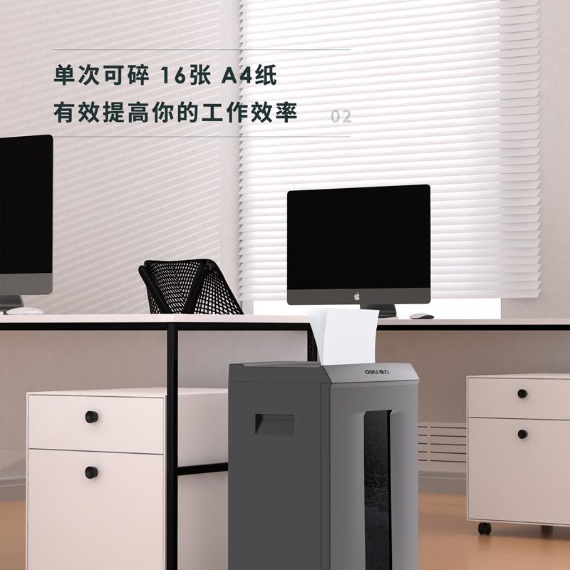 得力9906碎纸机(金属灰)5级保密 单次16张 30L可视容量 60分钟碎纸时间