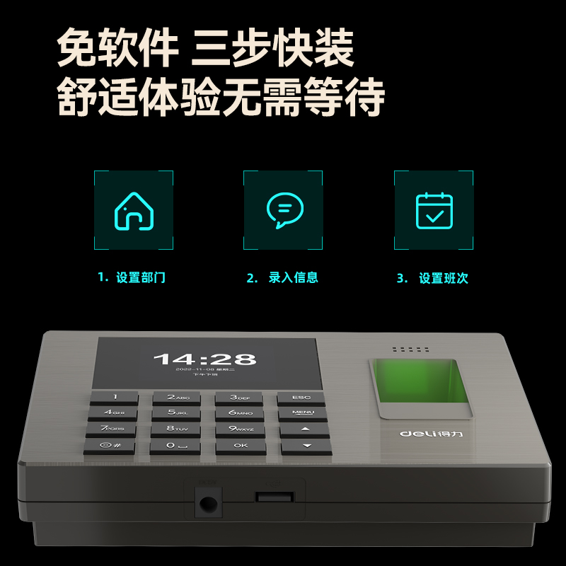 得力(deli)3763人脸指纹考勤机(单位:台)黑