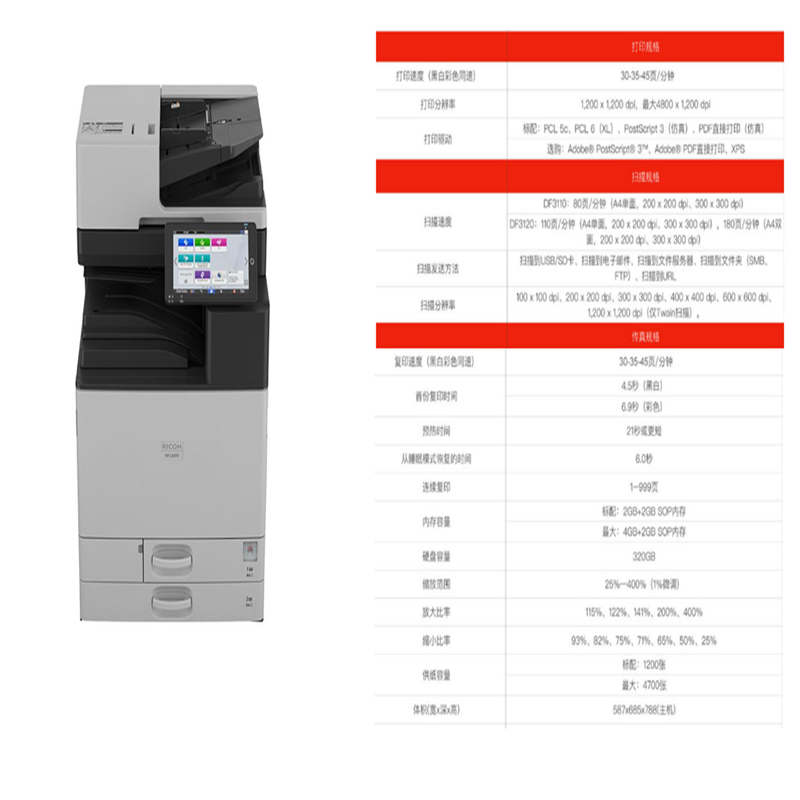 理光 IM C6010 A3彩色激光复合机 主机+双面同步送稿器+双纸盒(单位:台)