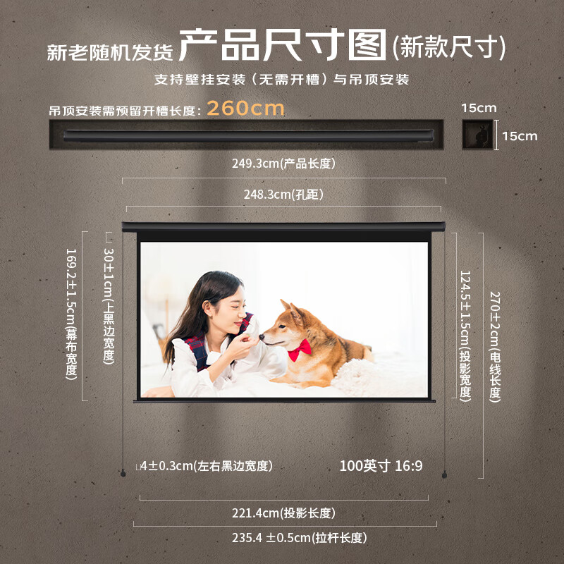 红叶120英寸16:10遥控电动幕布(副)