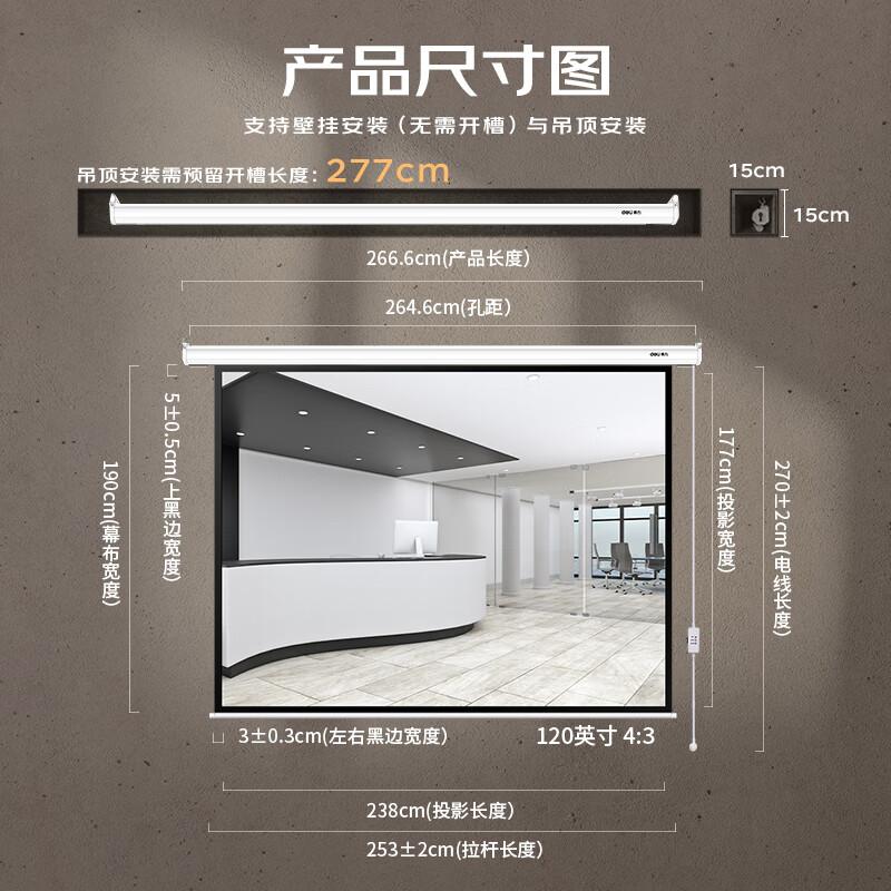 得力50493电动投影幕布(120英寸4:3)(白)(单位:副)