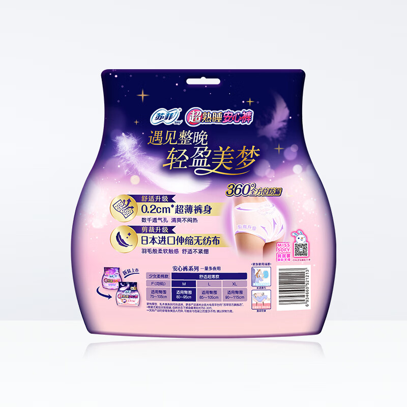 苏菲超熟睡夜用裤型卫生巾 安心裤M码2片(包)