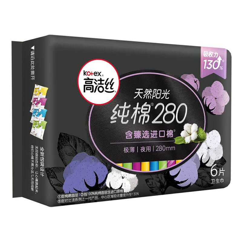 高洁丝(Kotex)臻选澳洲进口纯棉0.08极薄吸收芯280mm6片(包)