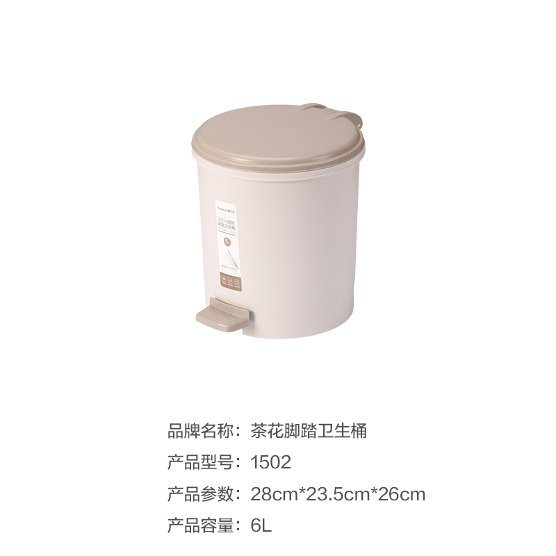 茶花1502圆型脚踏卫生桶28*23.5*26cm咖色12个/箱(单位:个)